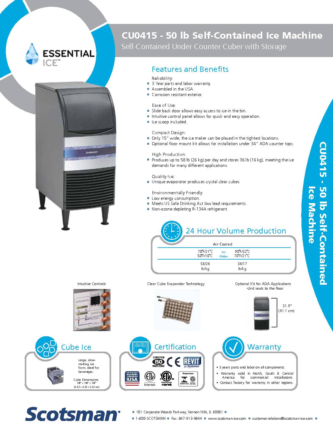 -Only 15” wide, the ice maker can be placed in the tightest locations - -Optional floor mount kit allows for installation under 34” countertops