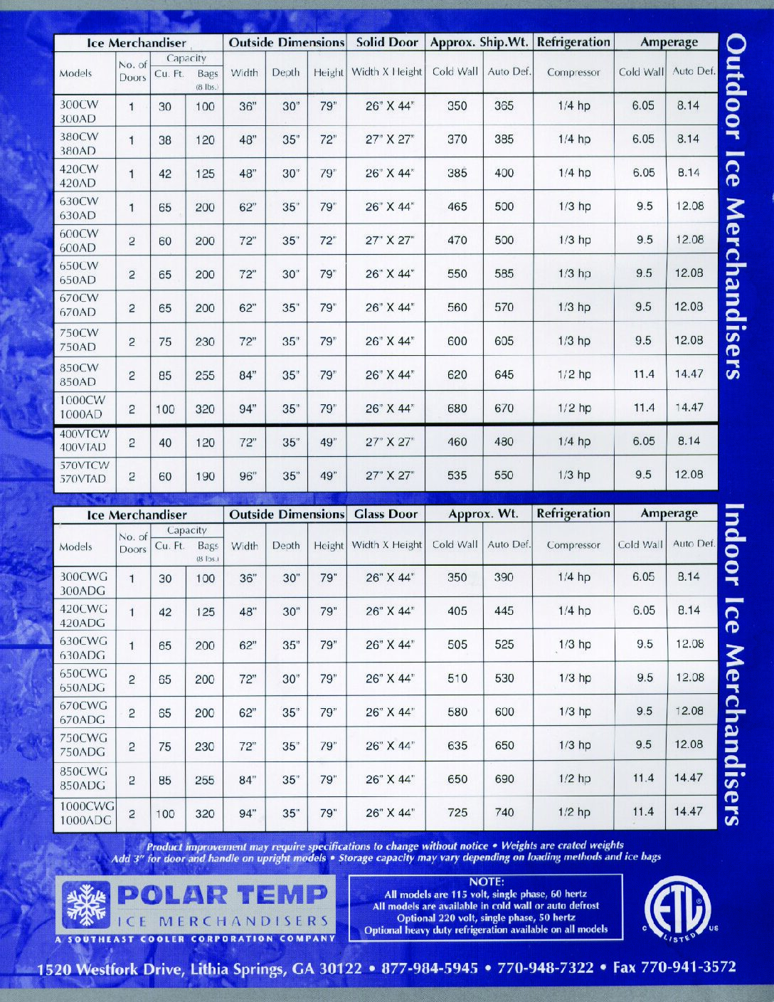 Thanks to industry-leading levels of insulation (3″ top and bottom, 2″ on the sides), the Polar Temp 300CWG 30 cubic foot indoor ice merchandiser keeps up to 100, 8 lb. bags of ice chilled and ready to go.